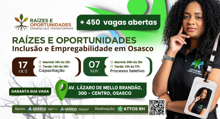A Sala Luiz Roberto Claudino da Silva (Sala Osasco) será palco de uma ação de empregabilidade voltada à inclusão profissional, com oferta de mais de 450 vagas de emprego destinadas a pessoas negras, indígenas e imigrantes. A iniciativa é promovida pelo projeto Raízes e Oportunidades – Origens que Transformam, da Attos RH Consultoria em Recrutamento […]